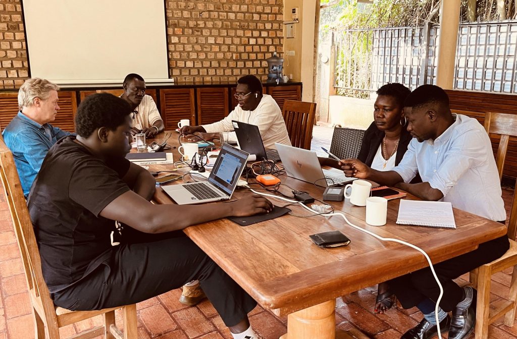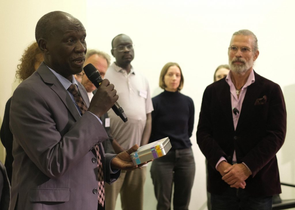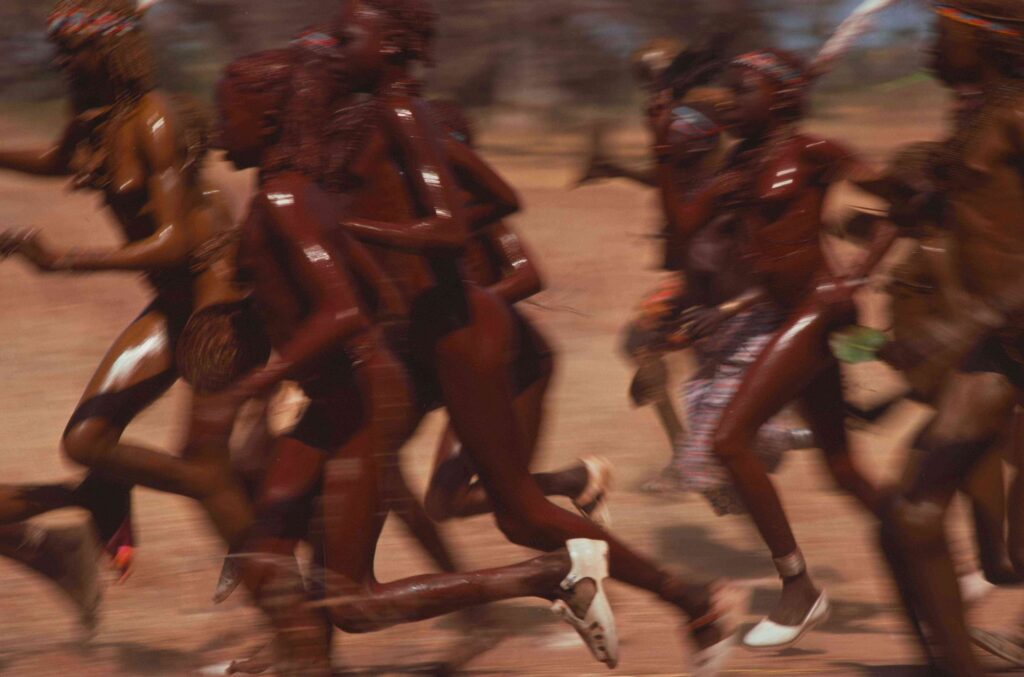 Kuku Tutu Kafi Kori mit einer Kopie seines Fotos von Riefenstahl, Masakin 2024, (oben) und Kaltoma Atyeb Kika Londi zeigt ihre Bildstrecke, Kau Nyaro 2024 (unten)